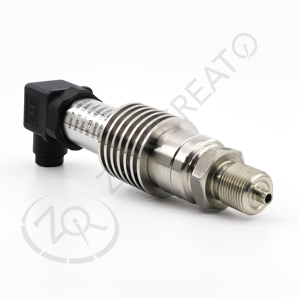 PT10SR-2530型高温压力变送器选用耐高温压力传感器作为信号测量元件。传感器由双膜片构成:钛合金感压膜片和钛合金测量膜片,被测介质压力经过传感器的感压膜片传递到测量膜片。变送器结构包含有散热结构,高精度的信号处理电路位于不锈钢壳体内,将传感器输出信号转换为标准输出信号。整个产品经过了元器件、半成品及成品的严格测试及老化筛选,性能稳定可靠。